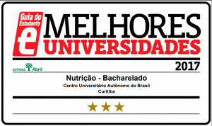 O curso de Nutrição da Escola de Saúde do UniBrasil Centro Universitário recebeu o conceito três no Exame Nacional de Desempenho de Estudantes (Enade), realizado pelos alunos em 2016. Coordenado pela professora, mestre Simone Biesek, o curso também foi avaliado com três estrelas no Guia do Estudante (GE), da Editora Abril.