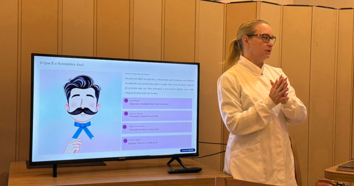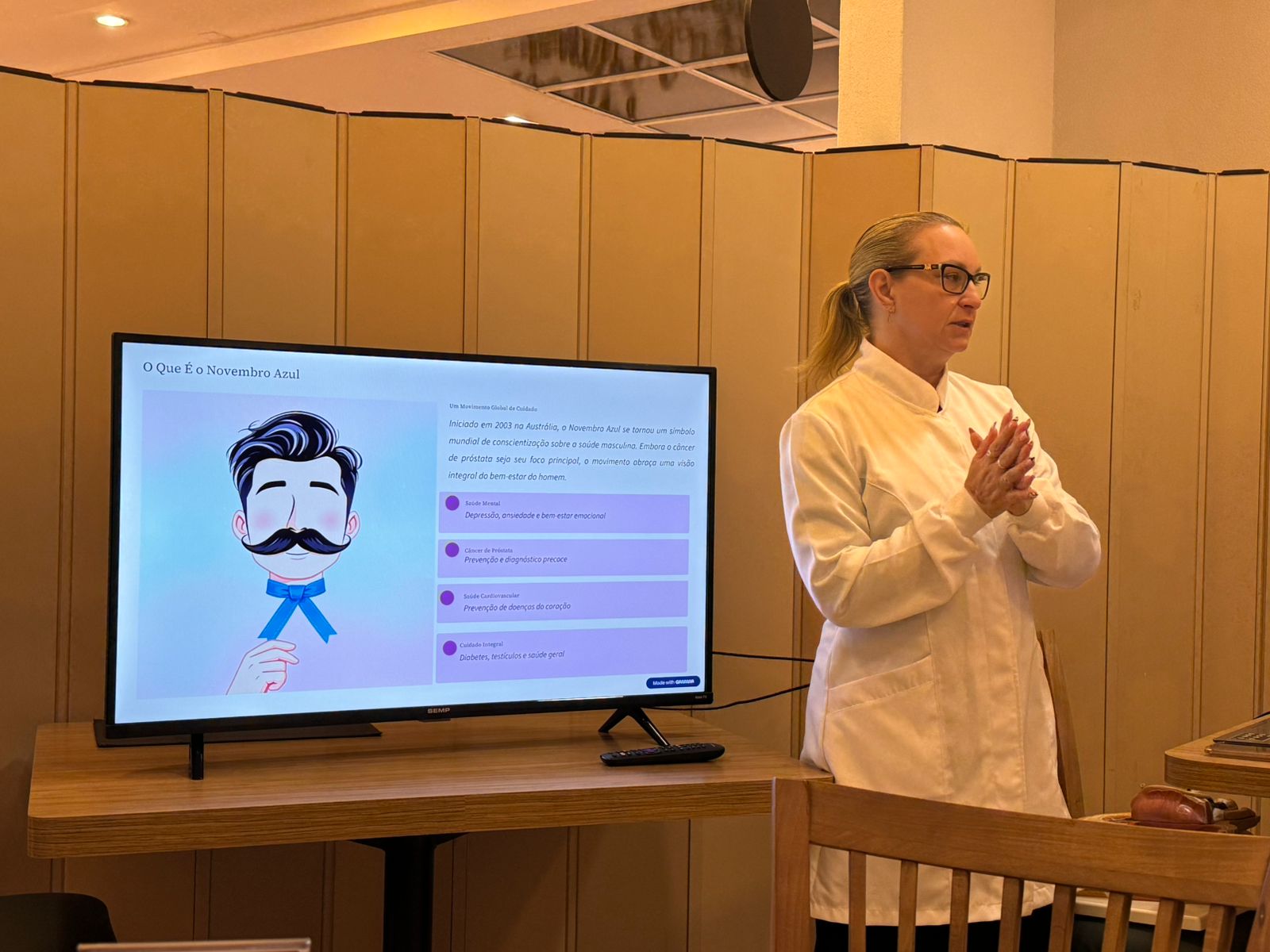 Realizada na Panificadora Aquarius, a iniciativa mobilizou estudantes e docentes em uma atividade de conscientização, prevenção e educação em saúde voltada à comunidade. Ao longo da ação, foram abordados temas essenciais como detecção precoce do câncer de próstata, saúde integral do homem, doenças crônicas, saúde mental e estratégias de autocuidado.