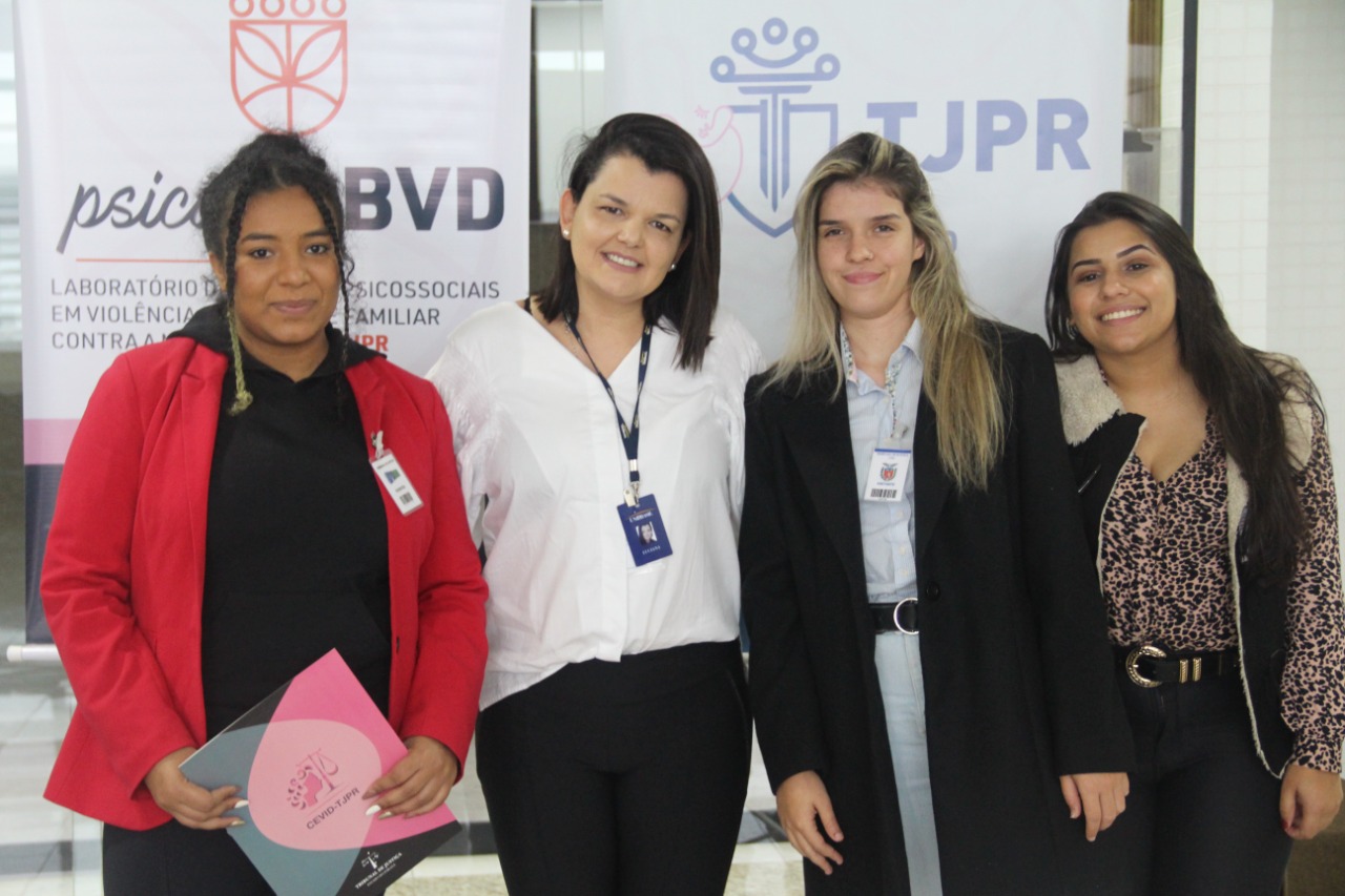 À convite do Tribunal de Justiça do Paraná (TJPR), a professora do curso de Pedagogia, Luciana Tavares, representou o UniBrasil no lançamento do Laboratório de Práticas Psicossociais em Violência Doméstica e Familiar contra a Mulher (CEVID-TJPR). Ela foi acompanhada das alunas do curso: Tieiny Araujo, Rocio Maidana e Julia Klein, que foram acompanhar o evento e integrar ao projeto Psicovida.