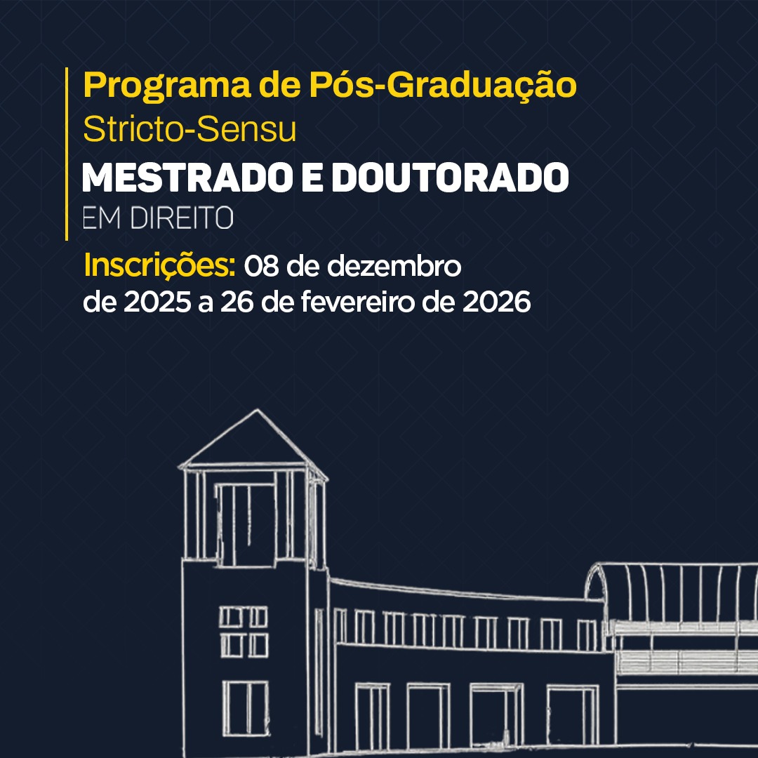 O UniBrasil Centro Universitário está com inscrições abertas para os programas de Mestrado e Doutorado em Direito, com ênfase em Direitos Fundamentais e Democracia. O prazo para candidatura segue até fevereiro de 2026.
