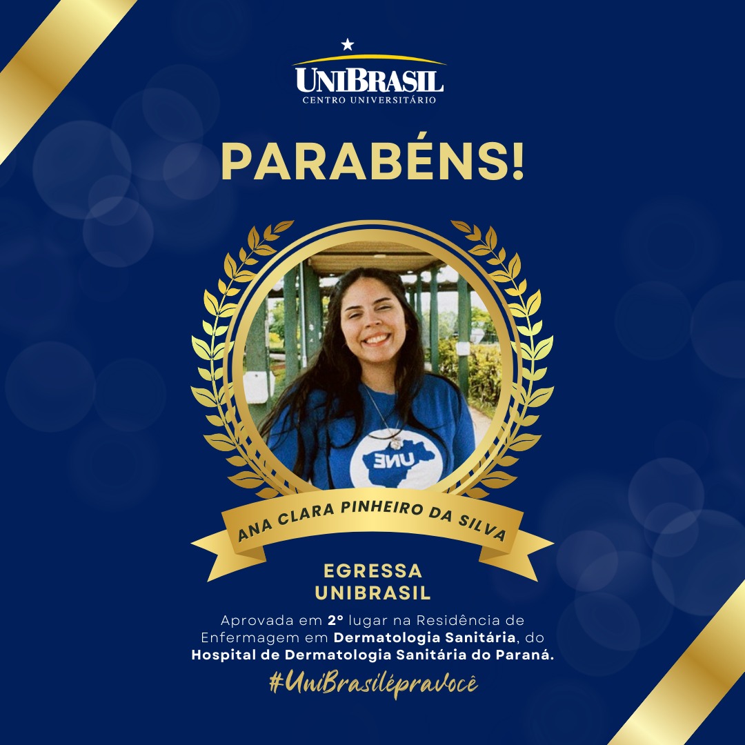 Aprovada em 2º lugar na Residência de Enfermagem em Dermatologia Sanitária do Hospital de Dermatologia Sanitária do Paraná, também vinculada à Fundação Estatal de Atenção em Saúde do Estado do Paraná (FUNEAS) e à Secretaria de Estado da Saúde do Paraná (SESA), Ana Clara se destaca pelo excelente desempenho e pelo compromisso com a prática profissional qualificada.