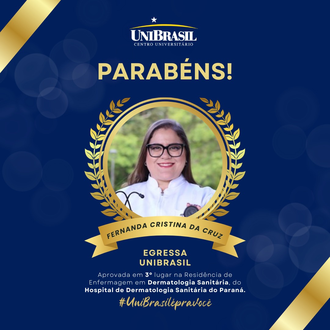 A egressa foi aprovada em 3º lugar na Residência de Enfermagem em Dermatologia Sanitária do Hospital de Dermatologia Sanitária do Paraná, programa vinculado à Fundação Estatal de Atenção em Saúde do Estado do Paraná (FUNEAS) e à Secretaria de Estado da Saúde do Paraná (SESA). A conquista reforça sua dedicação acadêmica e o preparo técnico desenvolvido ao longo da graduação.