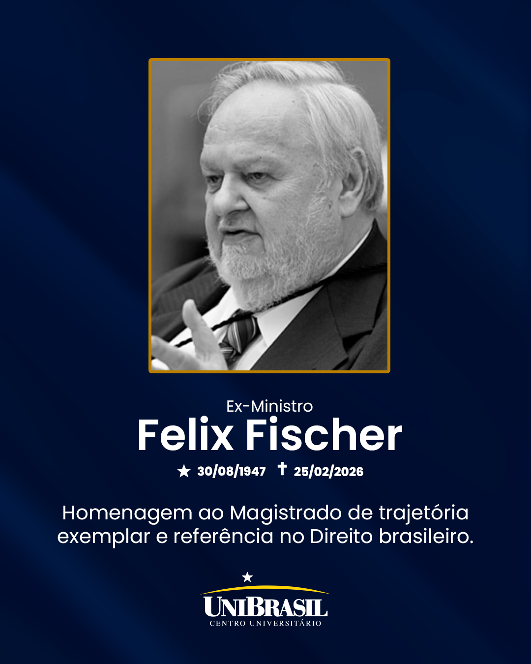 O UniBrasil Centro Universitário manifesta profundo pesar pelo falecimento do ministro aposentado do Superior Tribunal de Justiça (STJ), Felix Fischer, aos 78 anos, ocorrido em Brasília. Sua partida deixa uma lacuna imensurável no Direito brasileiro e na vida de todos que tiveram a honra de acompanhar sua trajetória marcante. Como autoridade respeitada, construiu uma história que se confunde com o próprio desenvolvimento do Direito no país, tornando-se parte fundamental da memória jurídica nacional.