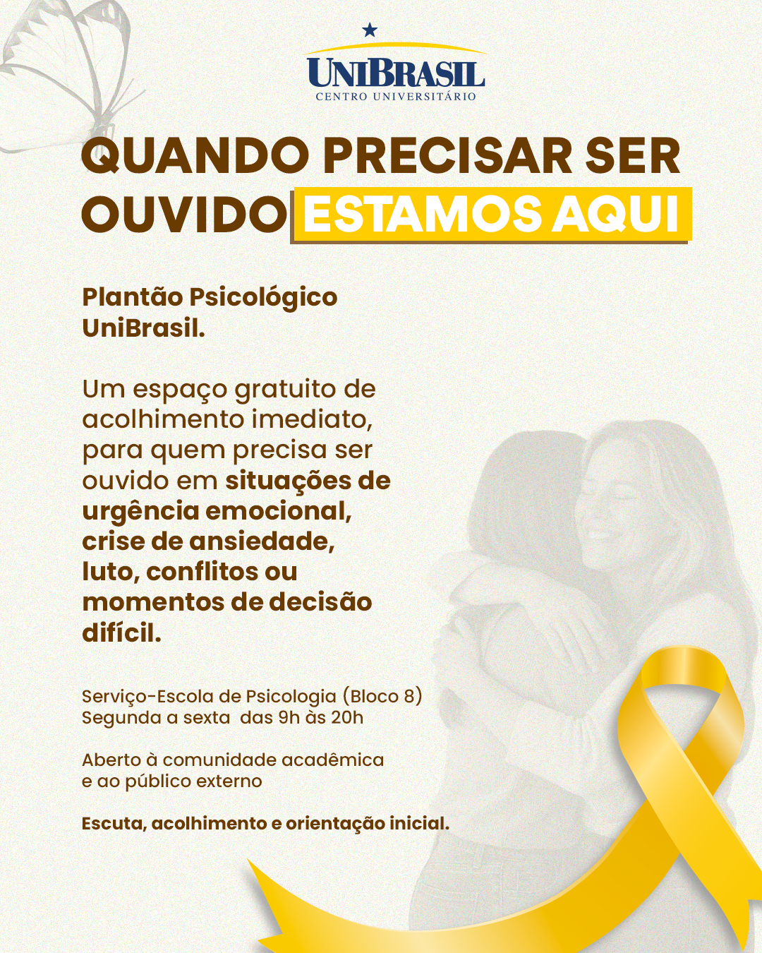 A saúde mental tem ganhado cada vez mais espaço nas discussões dentro e fora das universidades. Atento a essa necessidade, o UniBrasil mantém em funcionamento o Plantão Psicológico, um serviço voltado tanto para a comunidade acadêmica quanto para o público externo.