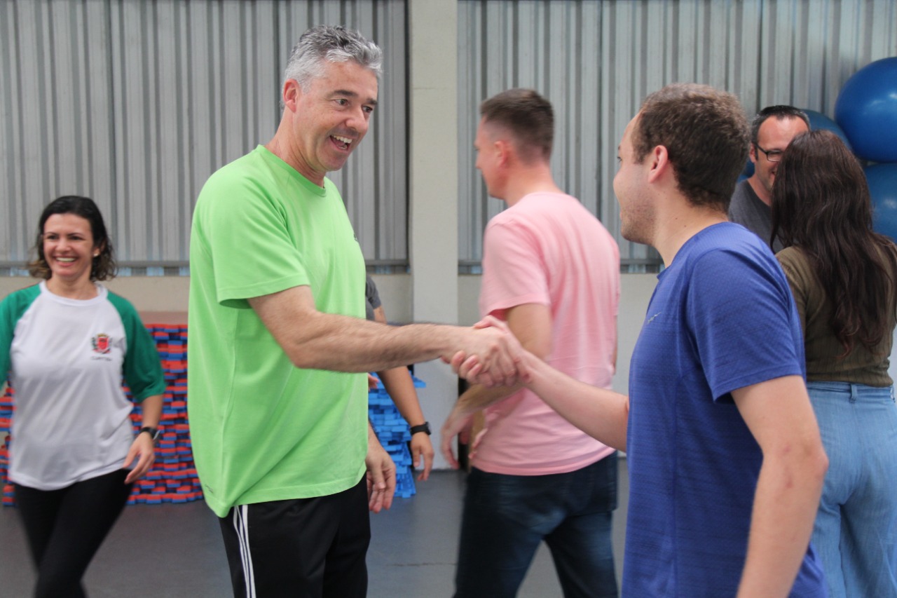 Atividade de “quebrar o gelo” voltado aos docentes de Educação Física, comandada pelo Conselheiro do CREF9/PR, Alessandro Bressan Godoy.